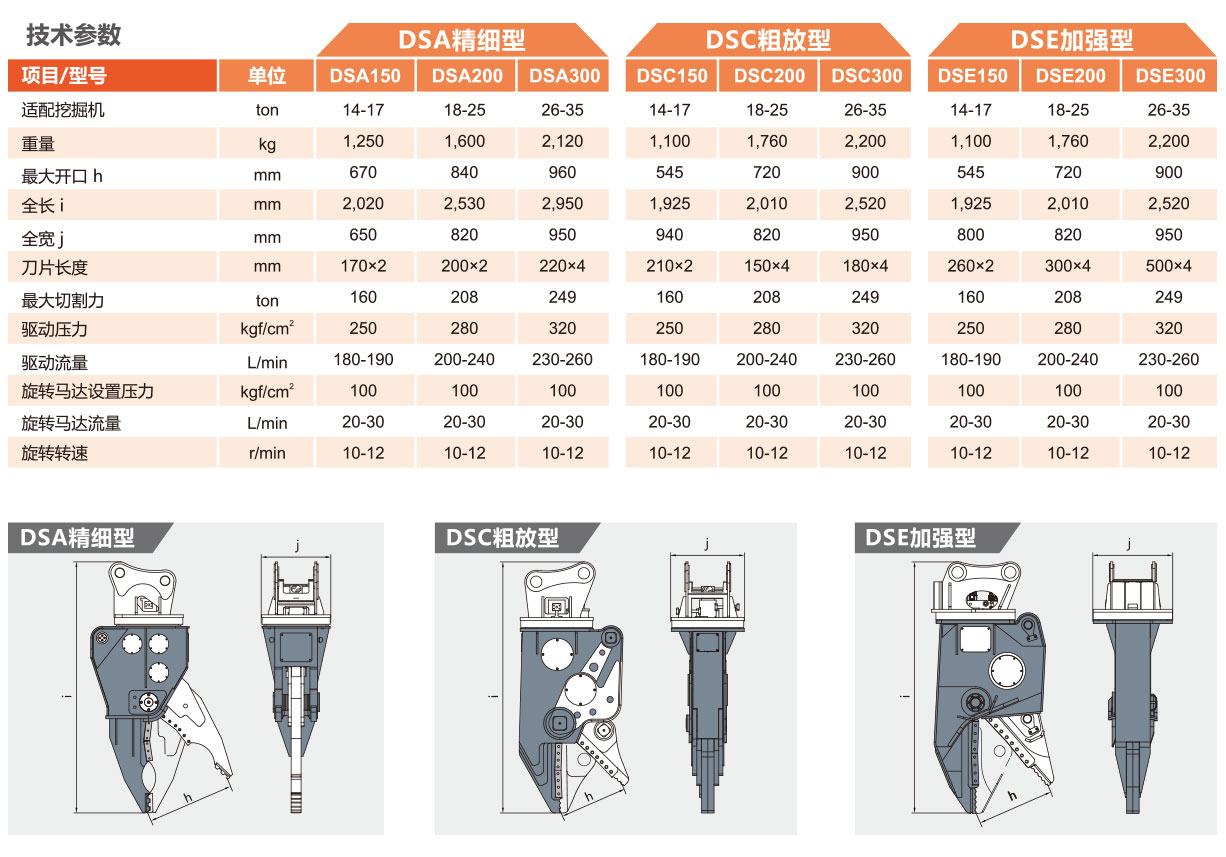 開發(fā)專用于金屬制品拆解的金山原廠液壓剪,配備3種類型。DSA液壓剪采用輕量設(shè)計(jì),刃尖形狀易于進(jìn)行微動(dòng)操作,可進(jìn)行抓握、剝離、撕裂等各種作業(yè),可高效推進(jìn)要求細(xì)致的分類作業(yè)。DSB液壓剪的厚刃尖形狀具有強(qiáng)大的抓握力、切割器切斷力和旋轉(zhuǎn)扭矩,可快速完成壓碎和切斷作業(yè)。DSC液壓剪雙開口設(shè)計(jì),效率更高。